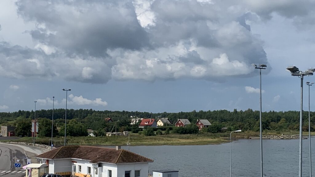 Dus hier op een strandje van Saaremaa trekken we toch maar ons pak weer aan. En wat denk je? Als een tocht door de Rode Zee, splijt het wolkendek open naar twee kanten en rijden wij onder 1 streep strakblauwe lucht naar de boot naar het vasteland. Pfff. Gelukkig is het niet heel erg warm en kan ik gebruik maken van mijn superslimme ‘motorkleding’ systeem. Dat is als volgt: Ik neem mijn zomerjack mee, dat is een zogenaamde ‘doorwaai-jas’, op plekken waar geen bescherming hoeft te zitten is de stof geperforeerd zodat de wind vrij spel heeft. Maar als die wind een beetje koel is heb je het dus gewoon koud. Dus heb ik ook een vest bij me, een thermojack en een regenjack. Is het een beetje fris dan wordt het motorjack + vest. Is het wat kouder dan motorjack + thermo. Is het echt koud dan motorjack + vest + thermo. En regent het dan motorjack + regenjack. Maar, let op – geniaal – ik kan het regenjack ook als windstopper gebruiken. Systeempje he? Ariaan heeft het inmiddels ook overgenomen. #tipvoordemotorrijder