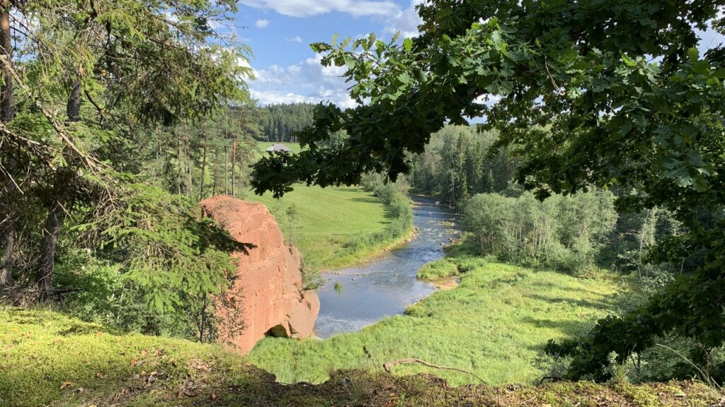 Vandaag maken we een hike door het nationaal park Gauja, het oudste nationaal park van Letland. We volgen een trail van 20 kilometer langs de rivier, over smalle paadjes, klim-, klauter- en glijwerk en veel traptreden :-). En in 4 uur tijd komen we 1-mens-met-hond tegen. Prachtig en meer zeg ik er niet over.