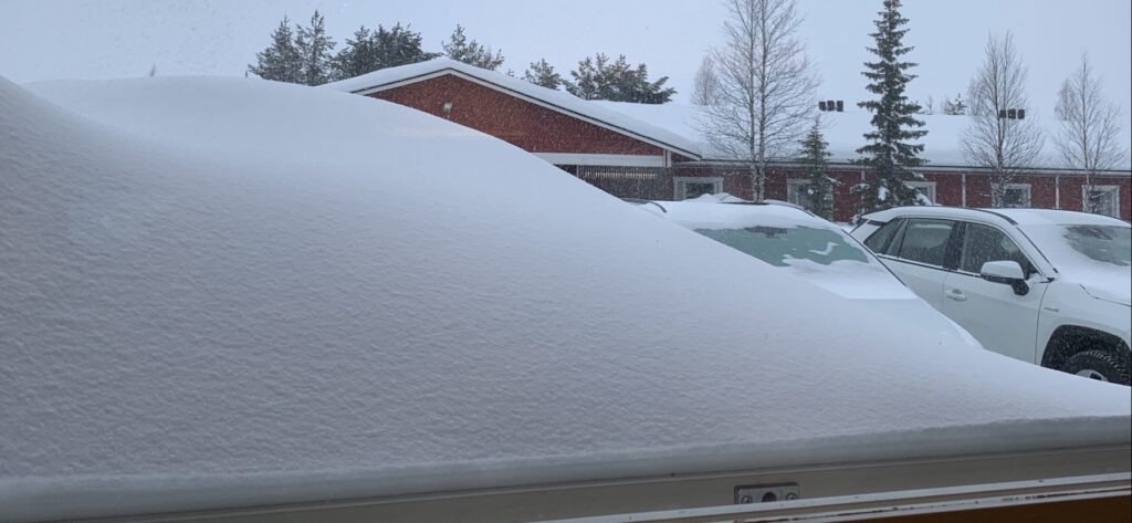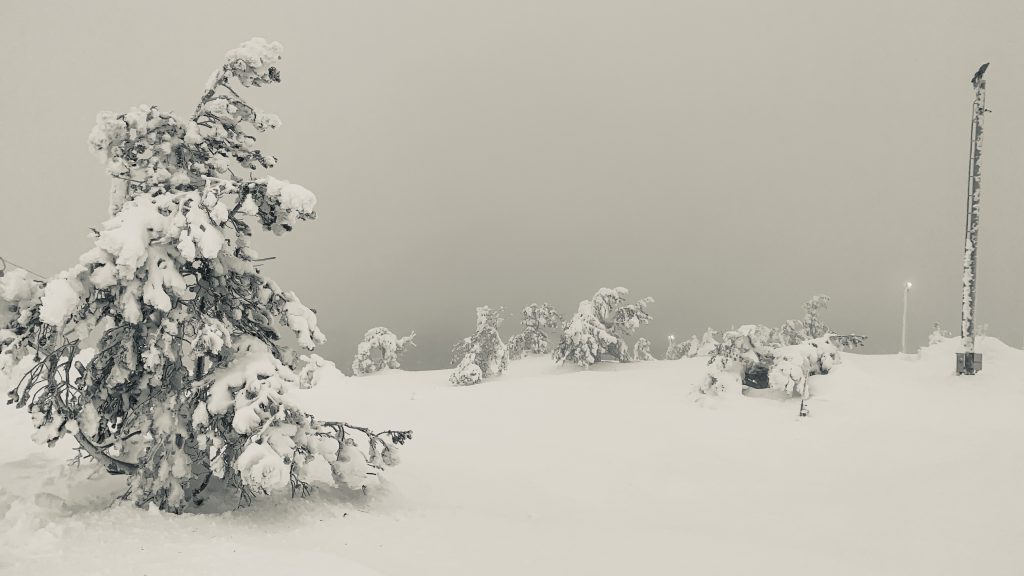 Liep ik me gisteren waanzinnig te verheugen op een dag skiën in -20 graden Celsius blijkt het vandaag ineens rond het nulpunt te zijn. En de hele dag sneeuw. Daardoor dus.