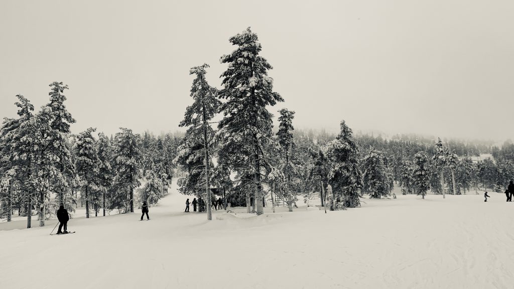 Ons hotel is aan de ene kant van het dorp en de pistes aan de andere kant. Geen skibus zoals we gewend zijn in Oostenrijk. En eigenlijk hoeft dat ook niet want met zo’n dikke laag sneeuw ski je gewoon dwars door het dorp naar de andere kant.