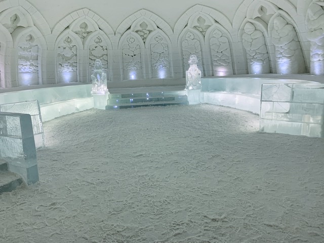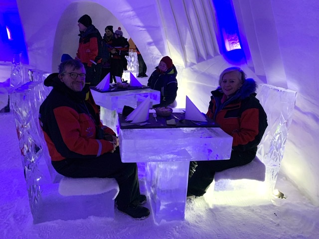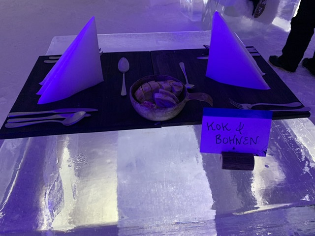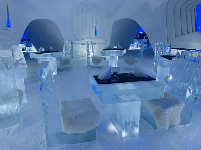 We hebben er heerlijk gegeten. De tafels en stoelen zijn van ijs en de ruimte om je heen is dus helemaal van sneeuw.