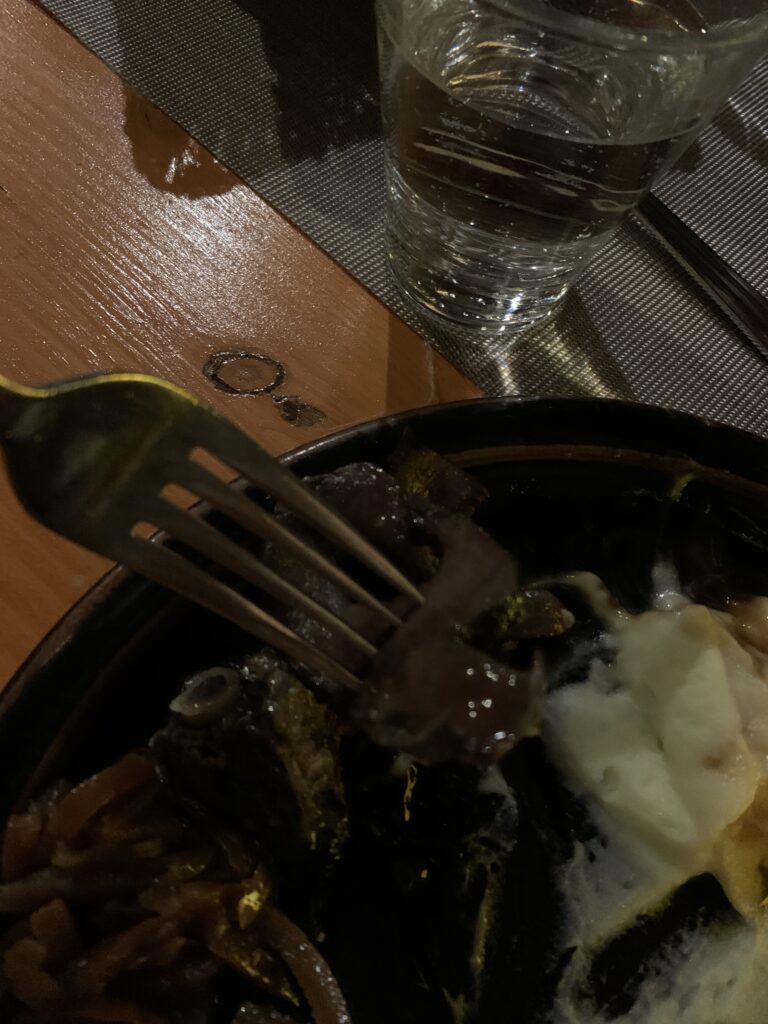 We hebben ook gegeten rondom de piste: rendier taco’s, rendier burrito’s. rendier spareribs, salade gerookt rendier, gestoofd rendier. Gerookte zalm, zalm uit de oven, salade zalm en burrito met zalm. Super gevarieerd dus 🙂 Maar heeeel lekker.