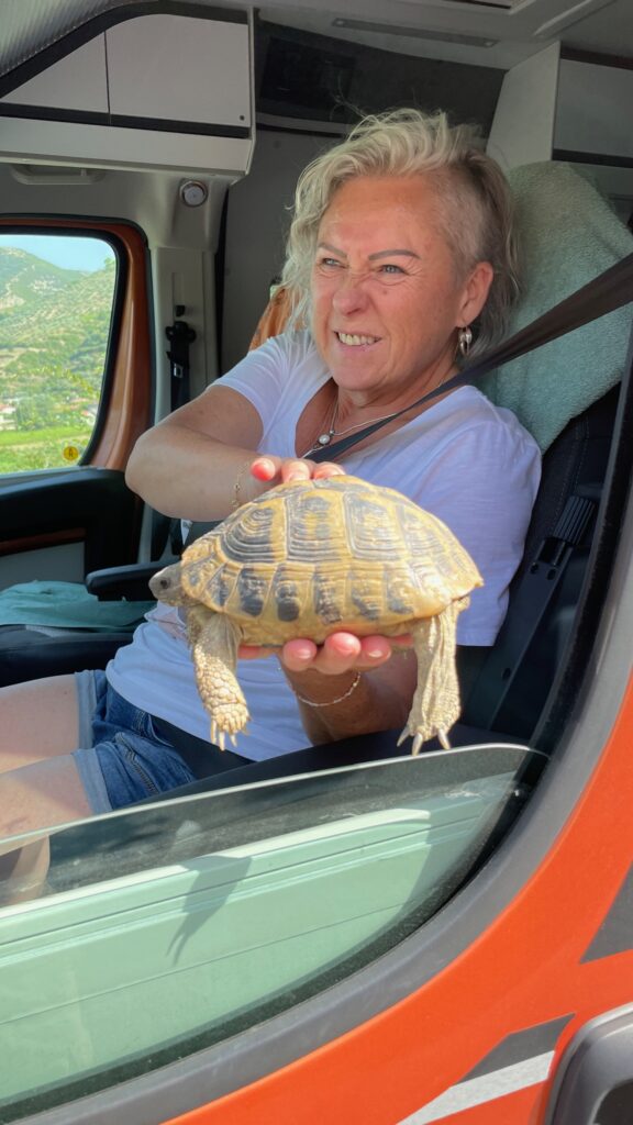 Onderweg kwamen we enkele landschildpadden tegen en mensen met muilezels. Leuk!