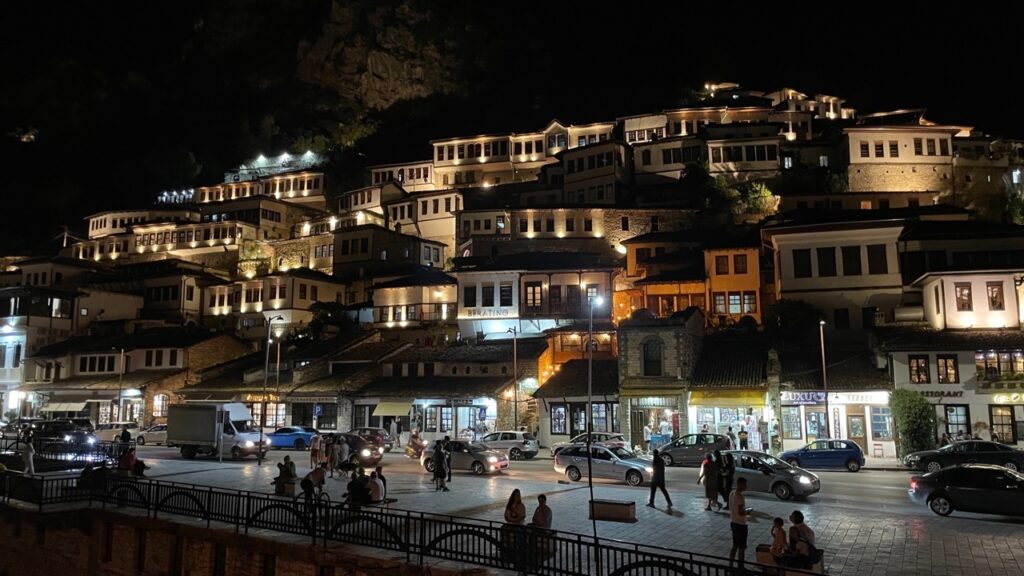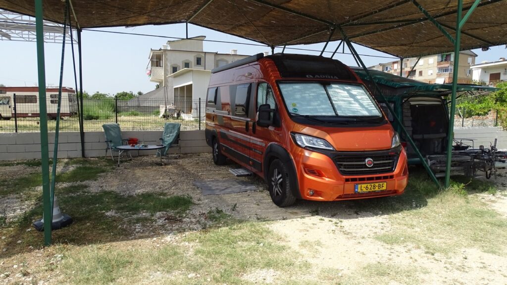 Na een paar uurtjes rijden we weer terug naar de camping in Berat. De thermometer van de auto geeft dan 47 graden celcius aan, lang leve de Airco als is het wel hard werken voor de bus.