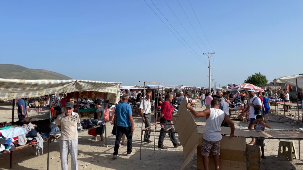 Net als we alles klaar hebben ziet Ariaan dat er aan de overkant van de weg een markt is opgezet. We kunnen vanaf de camping niet precies zien wat er verkocht wordt dus ons nieuwsgierigheid wordt per direct geprikkeld.