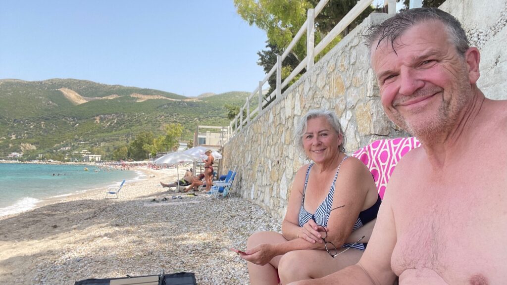 We nemen even vakantie van onze reis. Vier dagen strandhangen. Dat betekent voor ons, ontbijt aan het strand, zwemmen, lezen en of puzzelen, koffie aan het strand of in de strandtent, zwemmen, lezen en of puzzelen, even naar de winkeltjes voor water, bier, wijn, fruit en zo, zwemmen, lezen en of puzzelen, eten aan het strand.