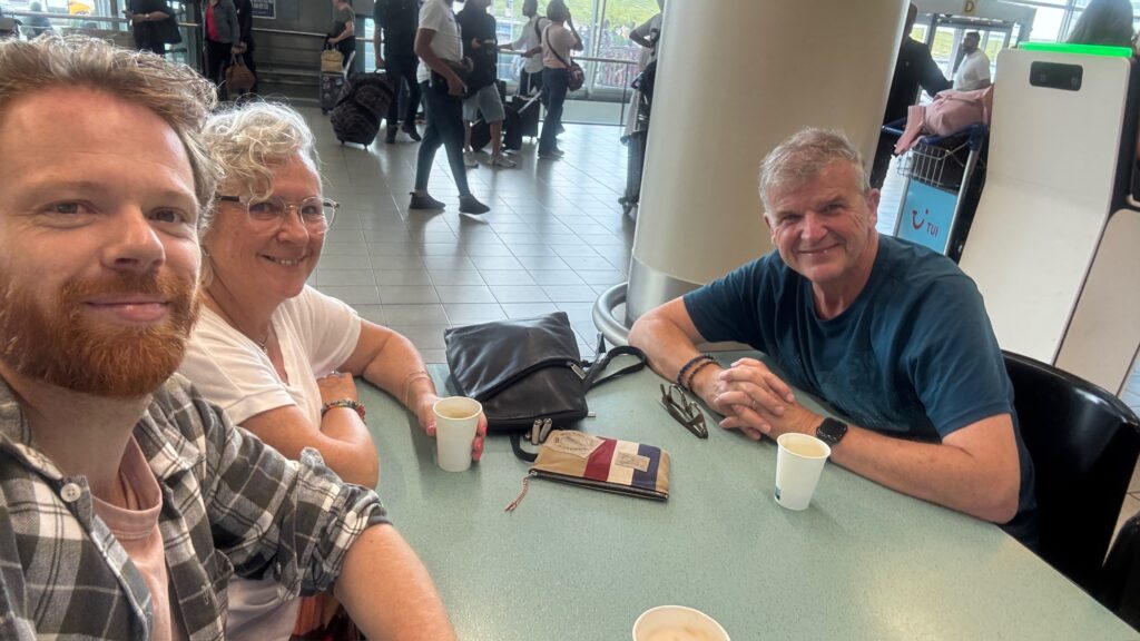 Vlak voor vertrek komt Leander komt Leander nog even een koffie met ons doen en zwaait ons uit. Toch altijd een leuke manier van vertrekken.
